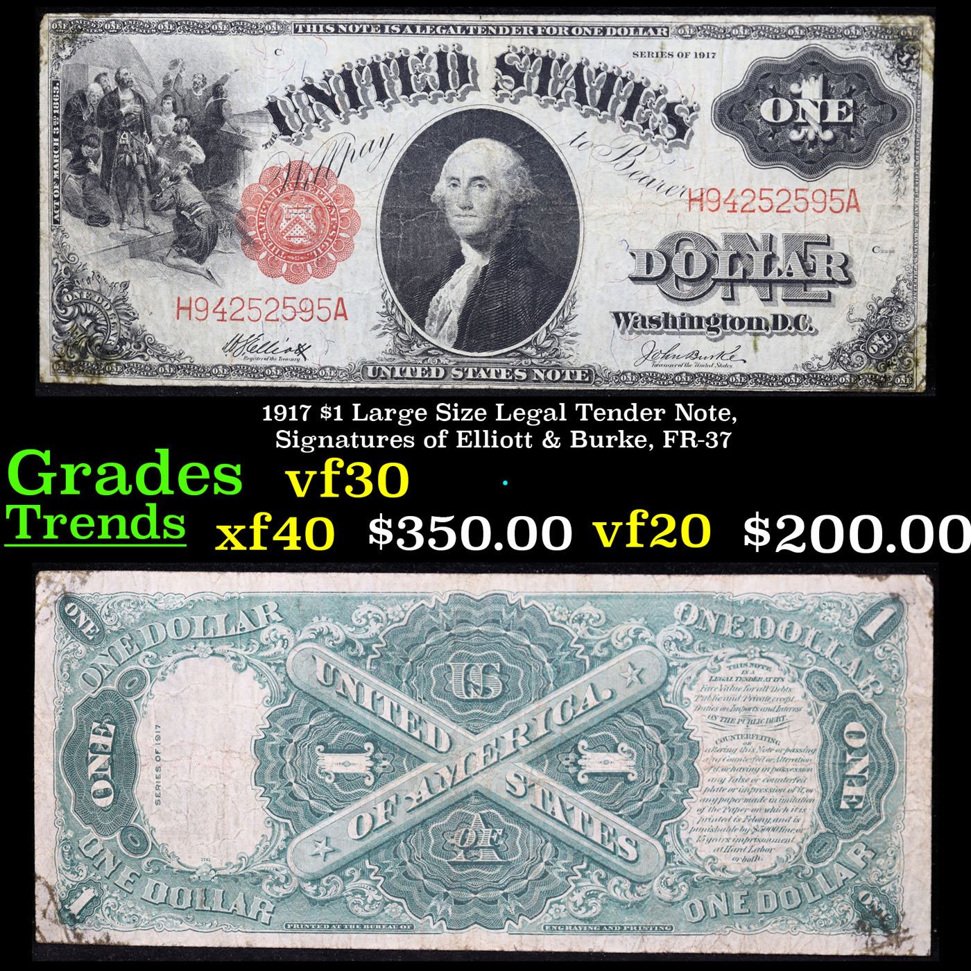 1917 $1 Large Size Legal Tender Note, Signatures of Elliott & Burke, FR-37 Grades vf++