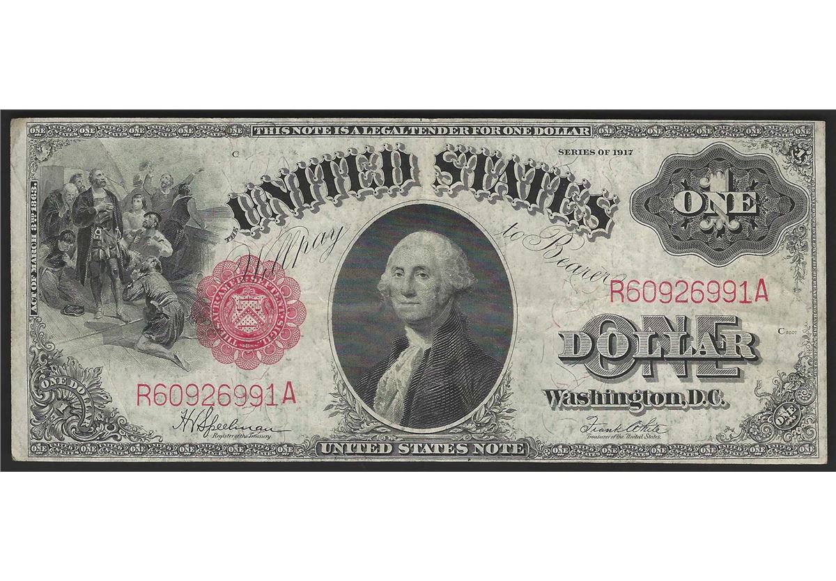 One 1917 $1 Large Size Legal Tender Note.