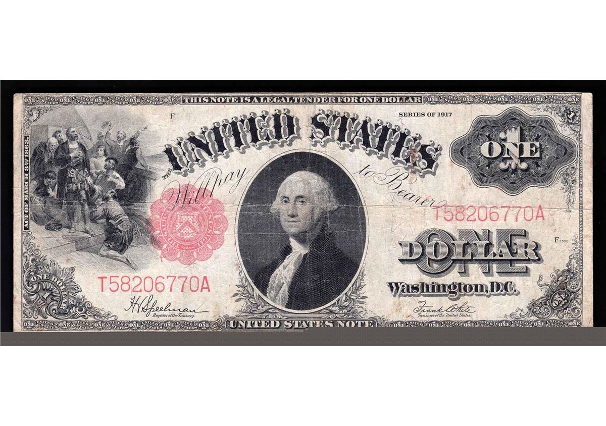 One 1917 $1 Large Size Legal Tender Note.