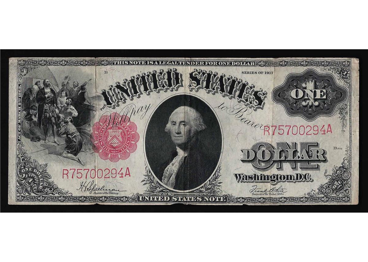 One 1917 $1 Large Size Legal Tender Note.