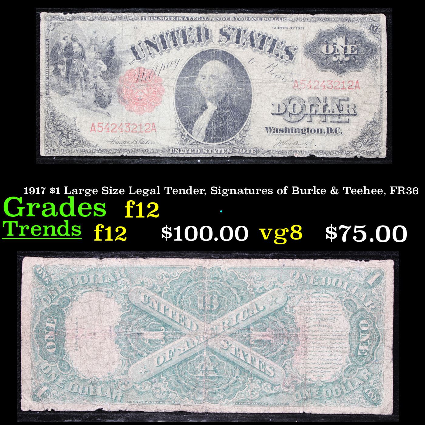 1917 $1 Large Size Legal Tender, Signatures of Burke & Teehee, FR36 Grades f, fine