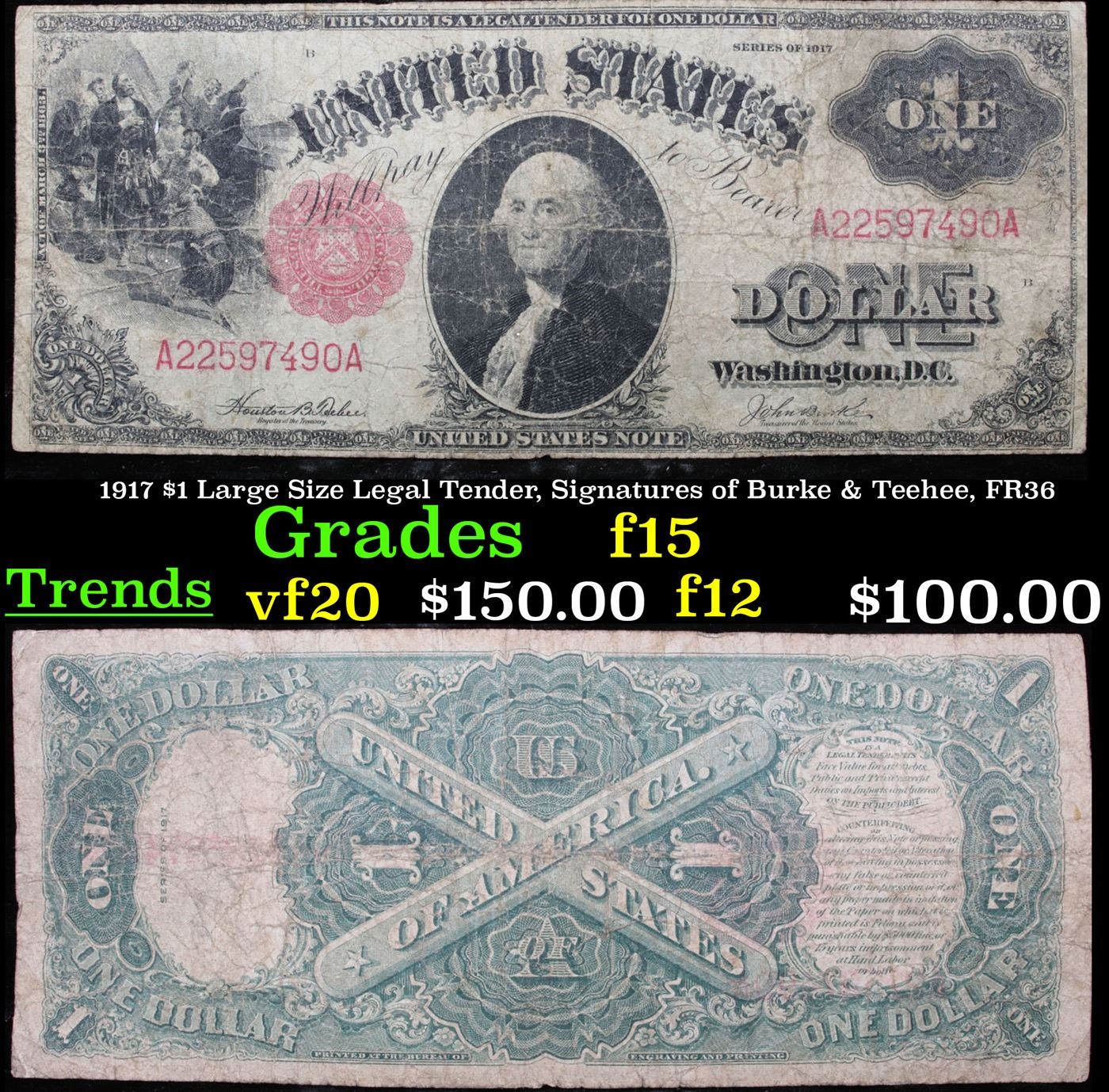 1917 $1 Large Size Legal Tender, Signatures of Burke & Teehee, FR36 Grades f+