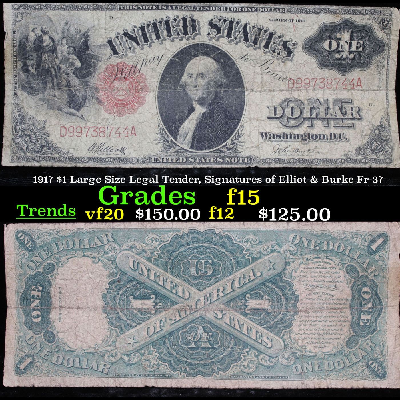 1917 $1 Large Size Legal Tender, Signatures of Elliot & Burke Fr-37 Grades f+
