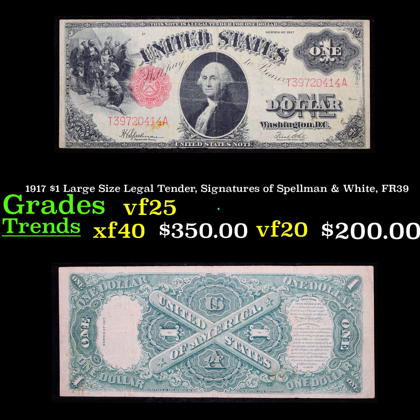 1917 $1 Large Size Legal Tender, Signatures of Spellman & White, FR39 Grades vf+