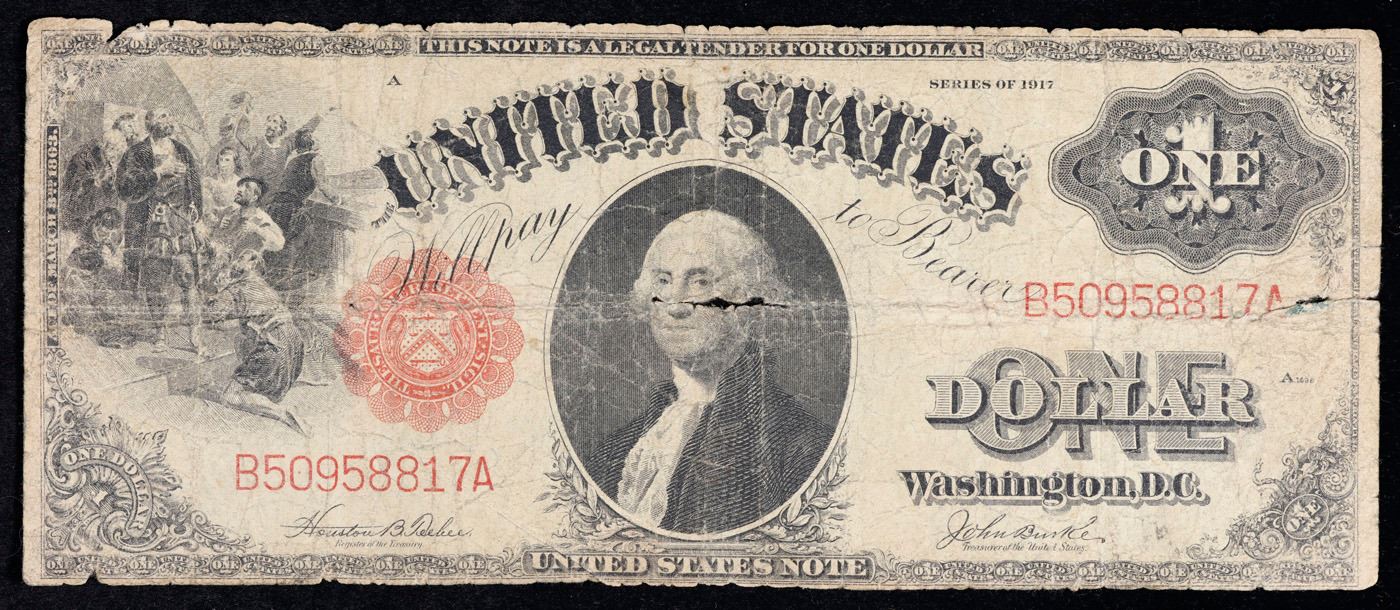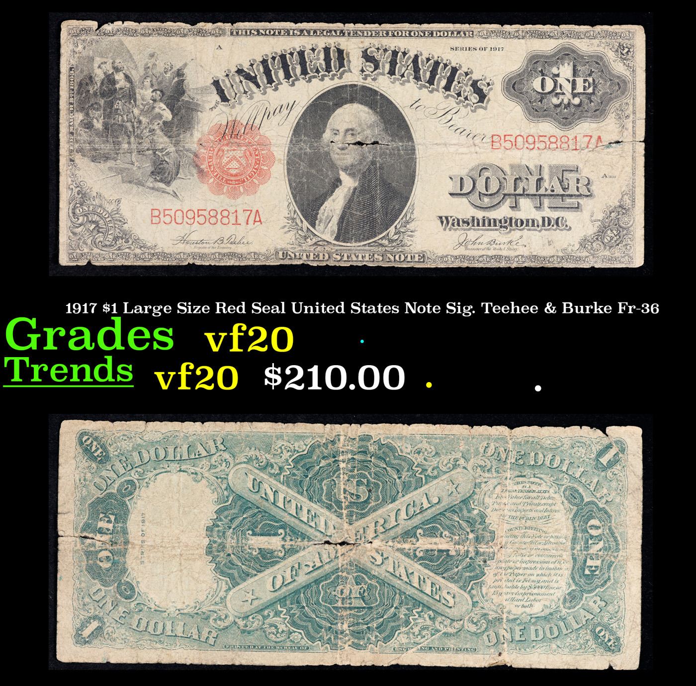 1917 $1 Large Size Red Seal United States Note Sig. Teehee & Burke Fr-36 Grades vf, very fine