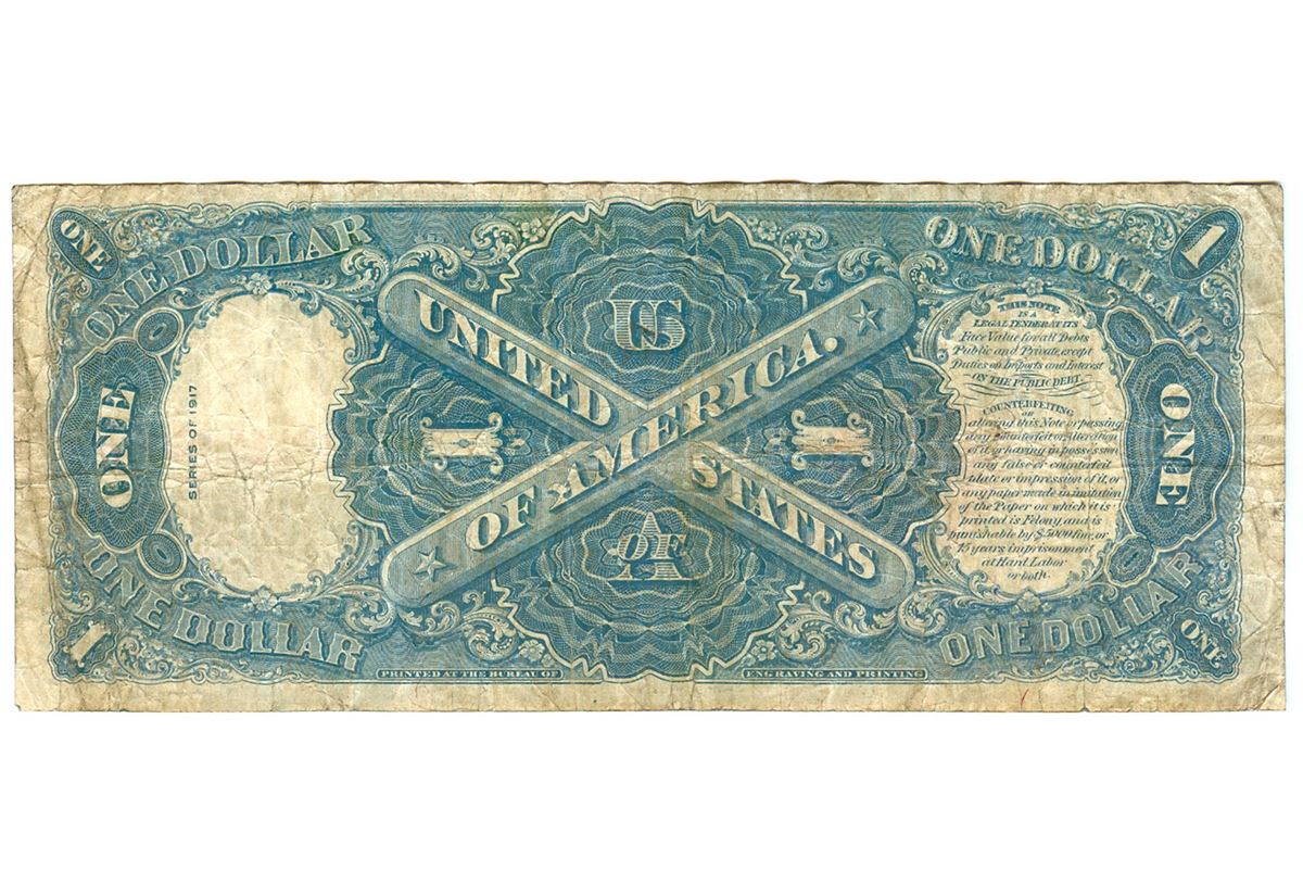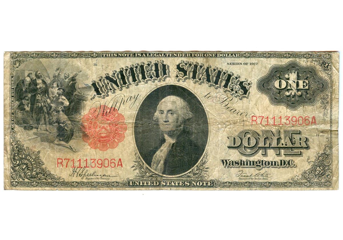 One 1917 $1 Legal Tender Bank Note Currency.