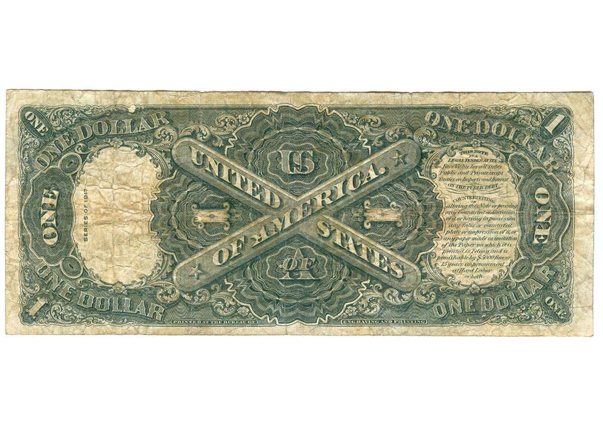 One 1917 $1 Legal Tender Bank Note Currency.