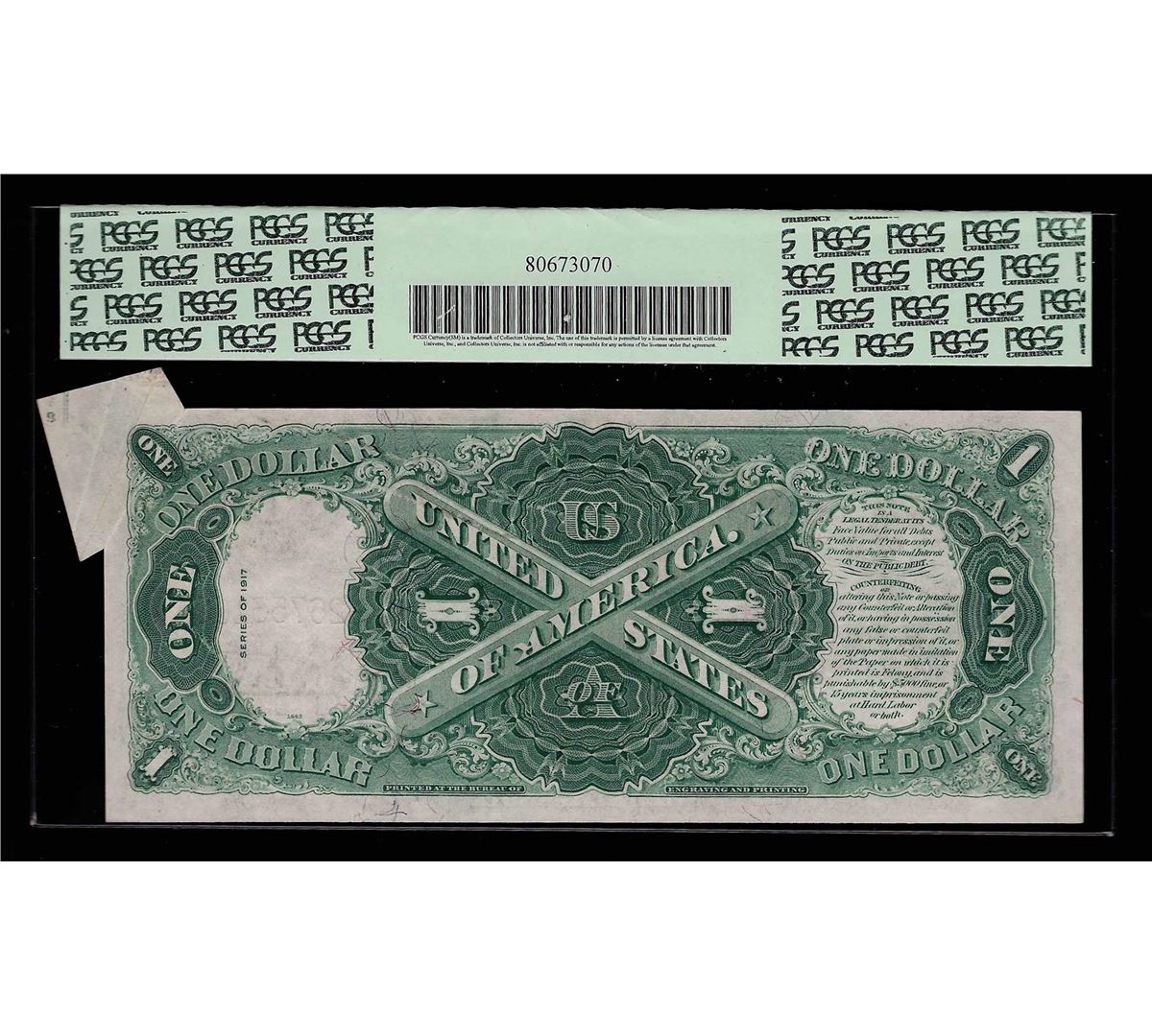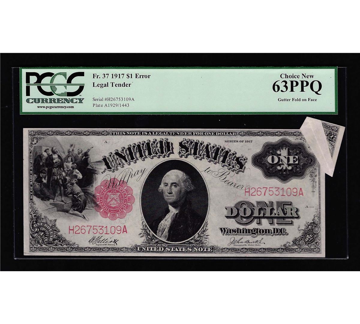 One 1917 $1 Legal Tender Note ERROR Gutterfold on Face PCGS 63PPQ. PCGS Graded.