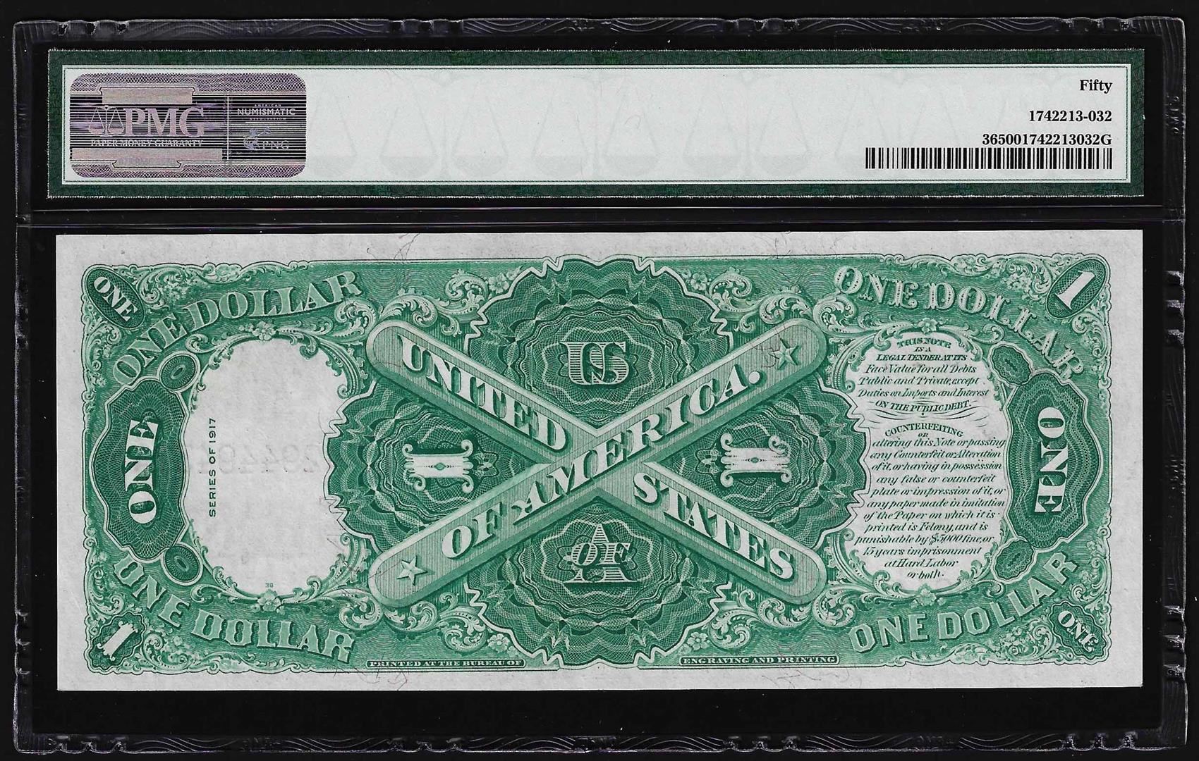One 1917 $1 Legal Tender Note Fr. 36 PMG About Uncirculated 50. PMG Certified.