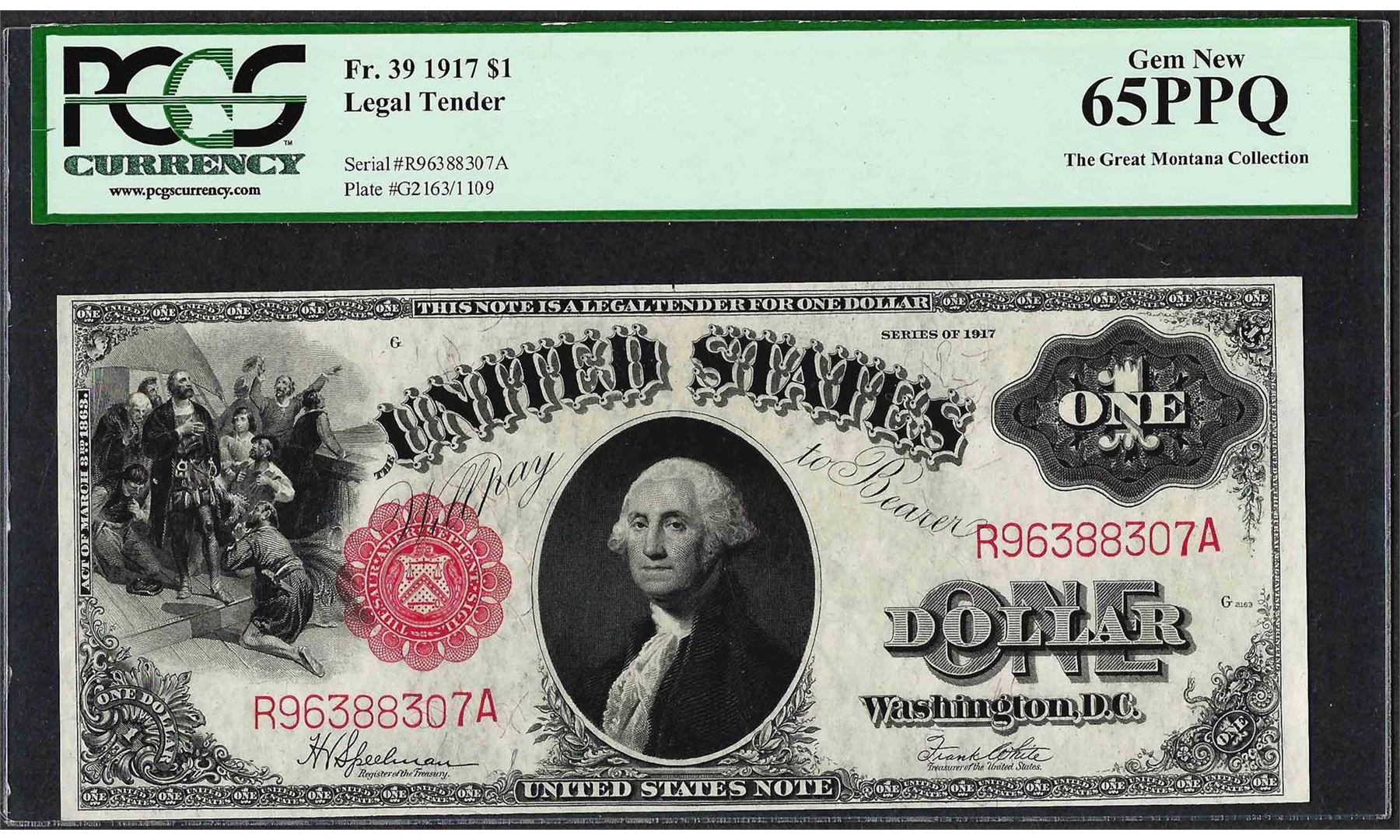 One 1917 $1 Legal Tender Note Fr.37 PCGS Gem New 65PPQ. PCGS Graded.