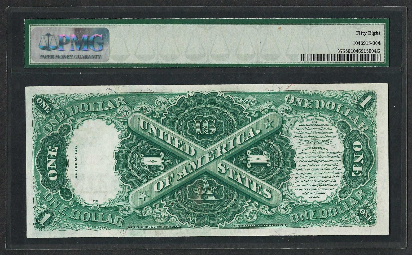 One 1917 $1 Legal Tender Note Fr.37 PMG Choice About Uncirculated 58. PMG Certified.
