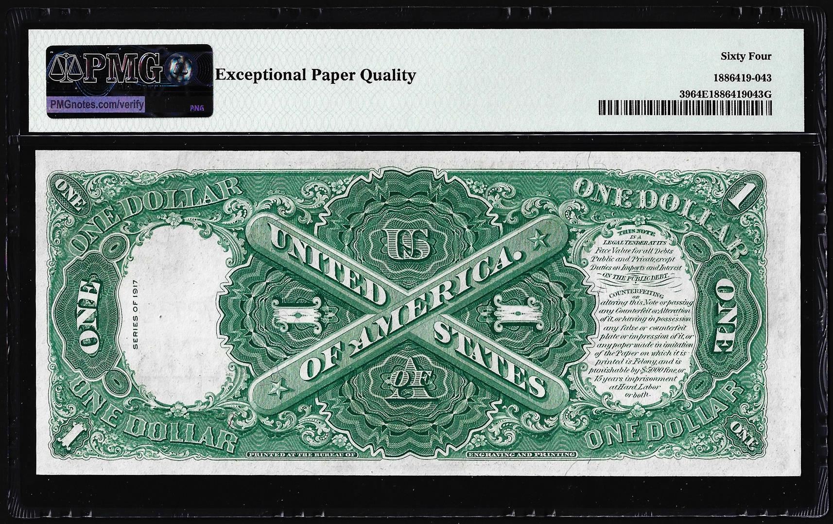 One 1917 $1 Legal Tender Note Fr.39 PMG Choice Uncirculated 64EPQ. PMG Certified.
