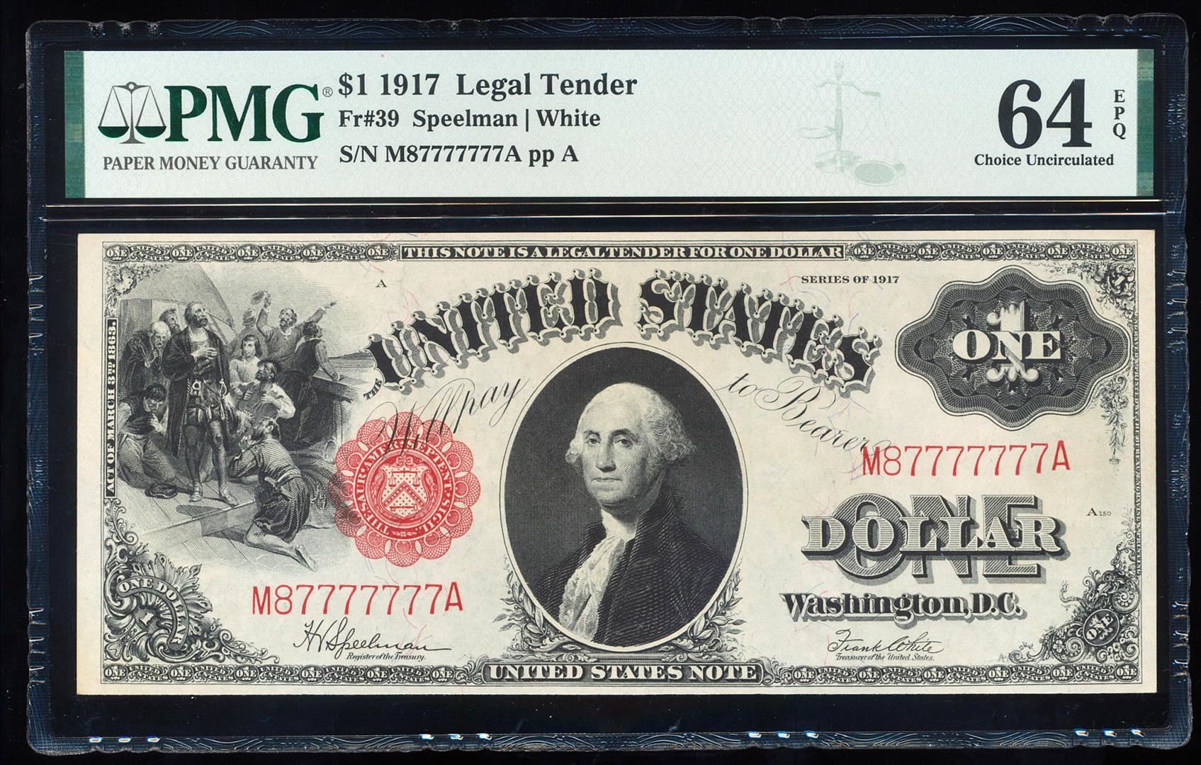 One 1917 $1 Legal Tender Note Fr.39 PMG Choice Uncirculated 64EPQ. PMG Certified.