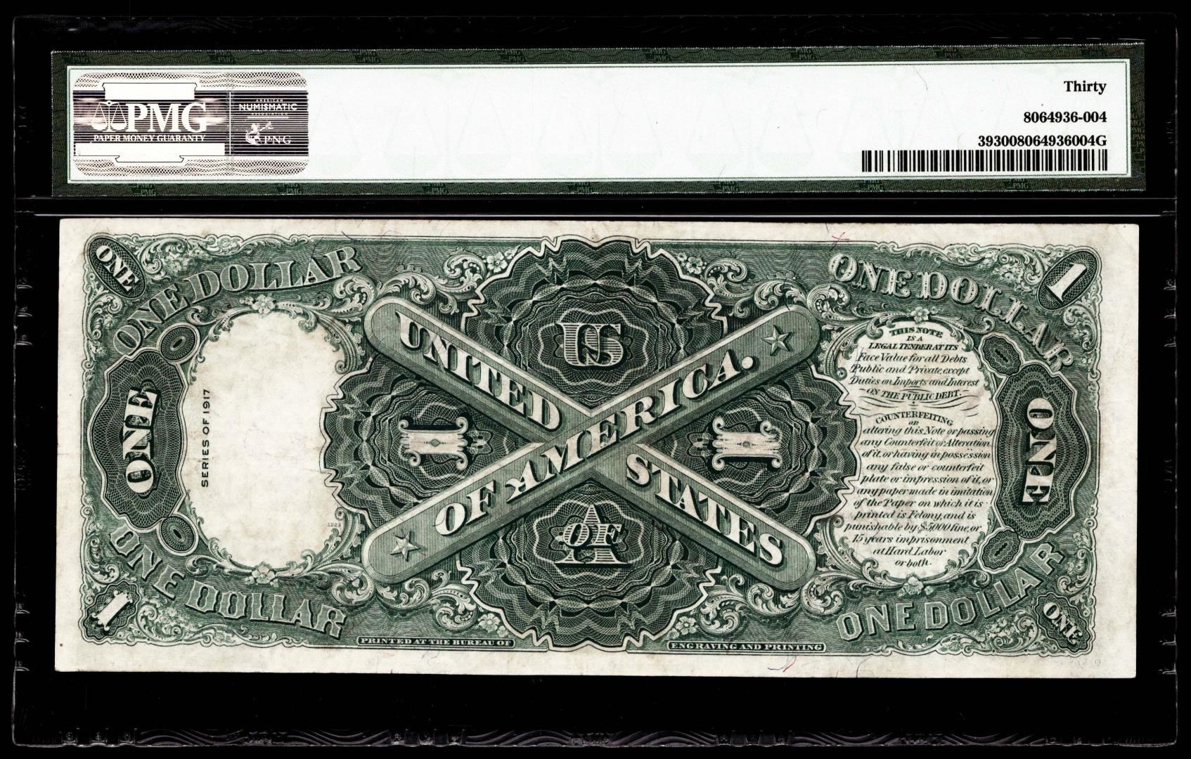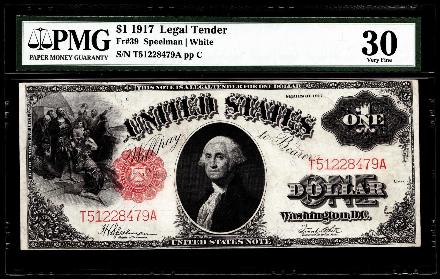 One 1917 $1 Legal Tender Note Fr.39 PMG Very Fine 30. PMG Certified.