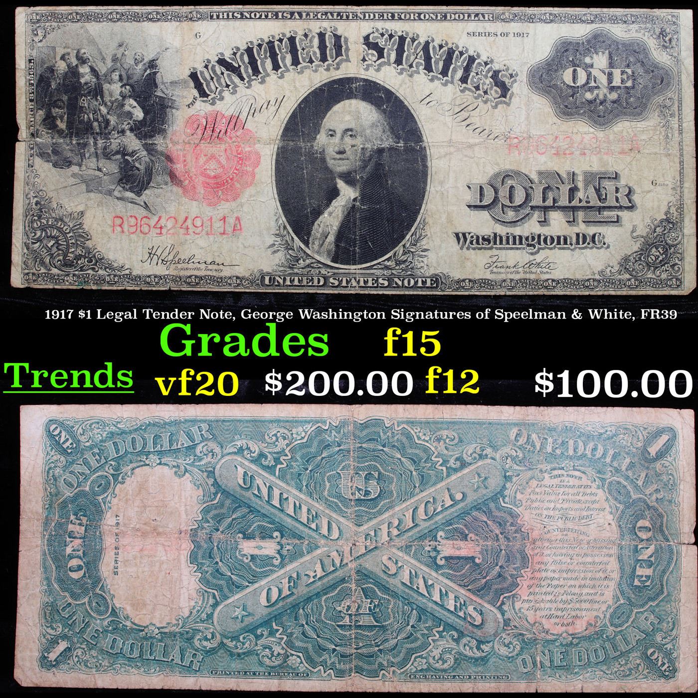 1917 $1 Legal Tender Note, George Washington Signatures of Speelman & White, FR39 Grades f+
