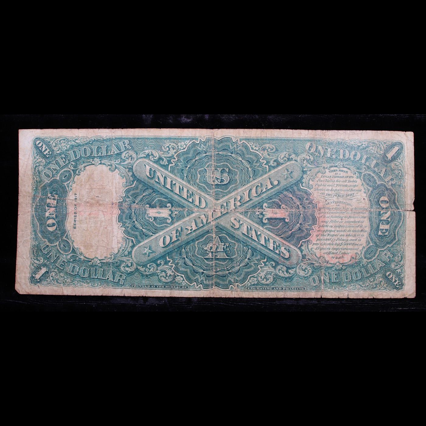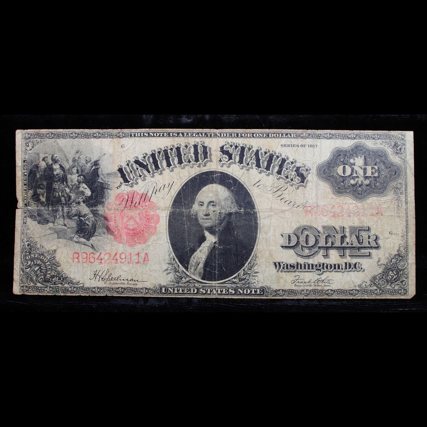 1917 $1 Legal Tender Note, George Washington Signatures of Speelman & White, FR39 Grades f+. 1917 $1 Legal Tender, Signatures of Speelman & White, FR39. This 1917 $1 note is the last large-sized legal tender bank note ever issued. It's referred to as a "Horseblanket Note," due to their large size. The obverse features Washington and a vignette of Columbus sighting America. The reverse shows a "sawhorse" design. Add in the bright red seal and serial numbers and you've got a miniature work of art. The nicest one we have ever been able to bring to auction.