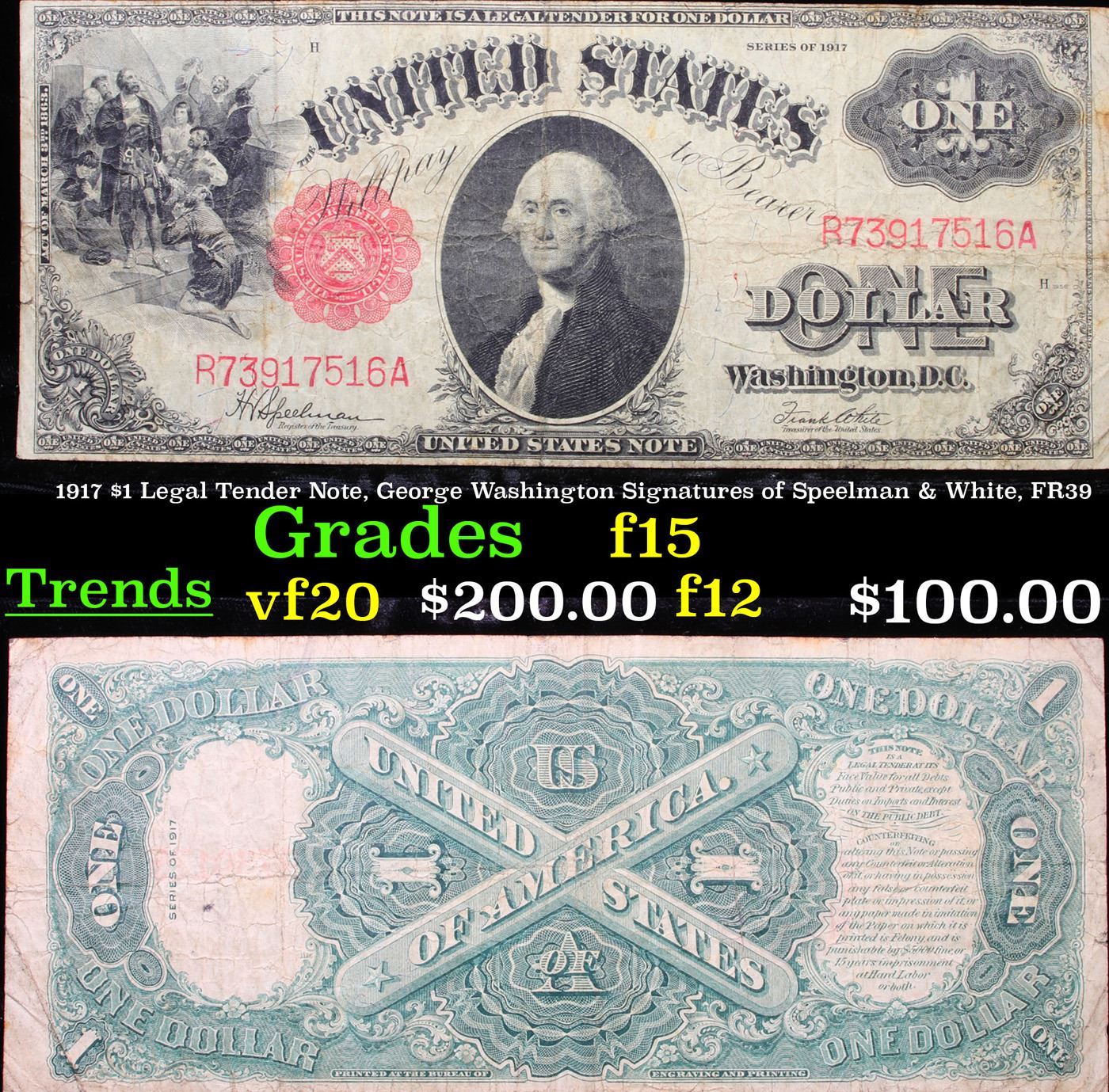 1917 $1 Legal Tender Note, George Washington Signatures of Speelman & White, FR39 Grades f+