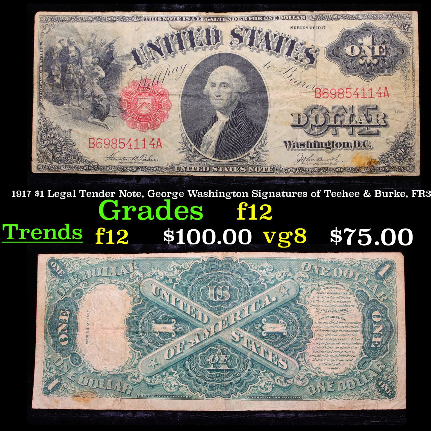 1917 $1 Legal Tender Note, George Washington Signatures of Teehee & Burke, FR36 Grades f, fine