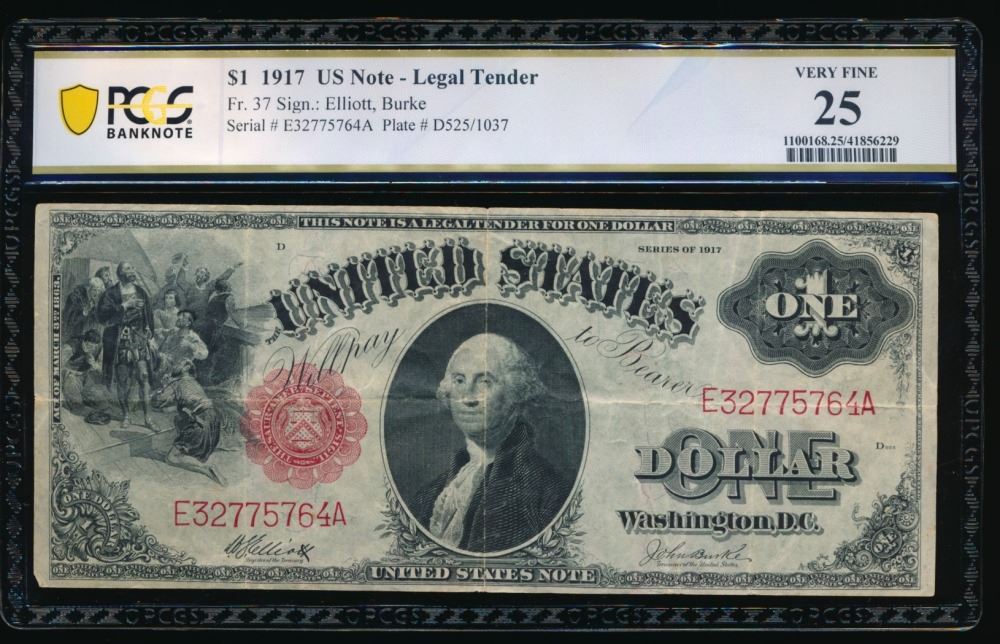 One 1917 $1 Legal Tender Note PCGS 25.