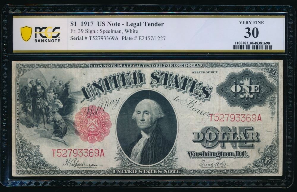 One 1917 $1 Legal Tender Note PCGS 30.