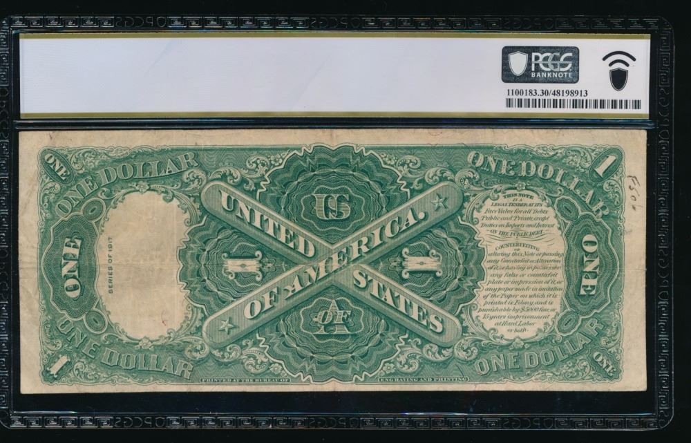 One 1917 $1 Legal Tender Note PCGS 30.