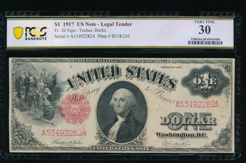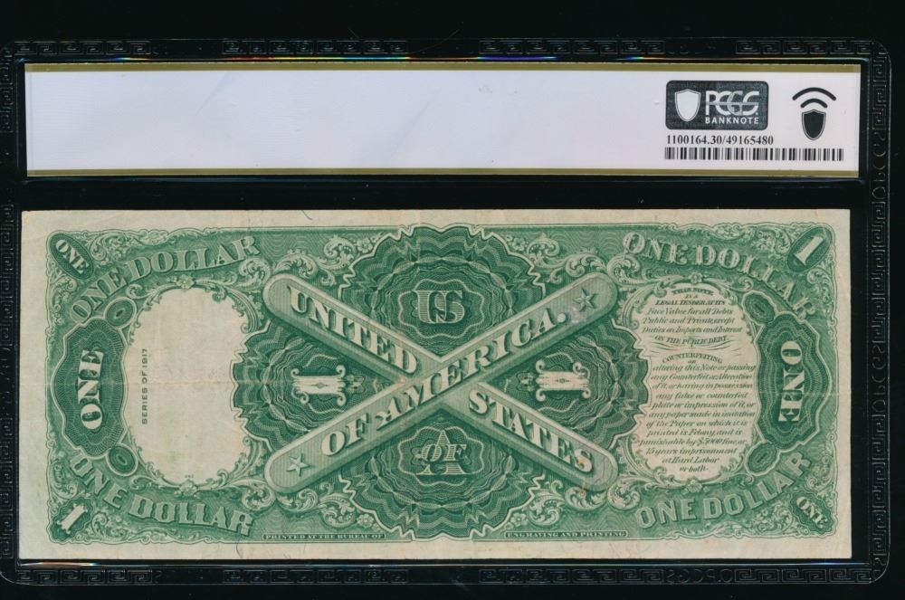 One 1917 $1 Legal Tender Note PCGS 30.