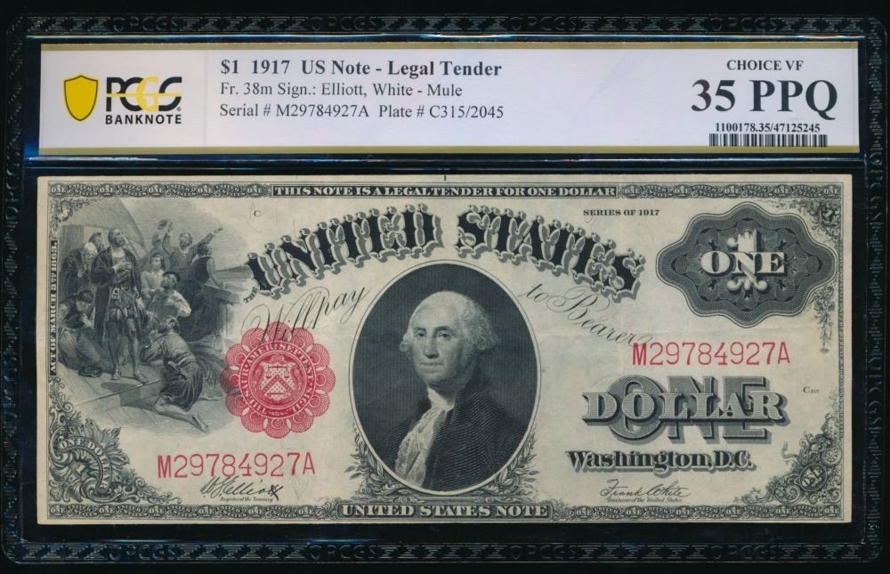 One 1917 $1 Legal Tender Note PCGS 35PPQ.