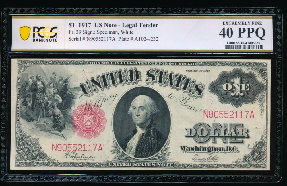 One 1917 $1 Legal Tender Note PCGS 40PPQ.