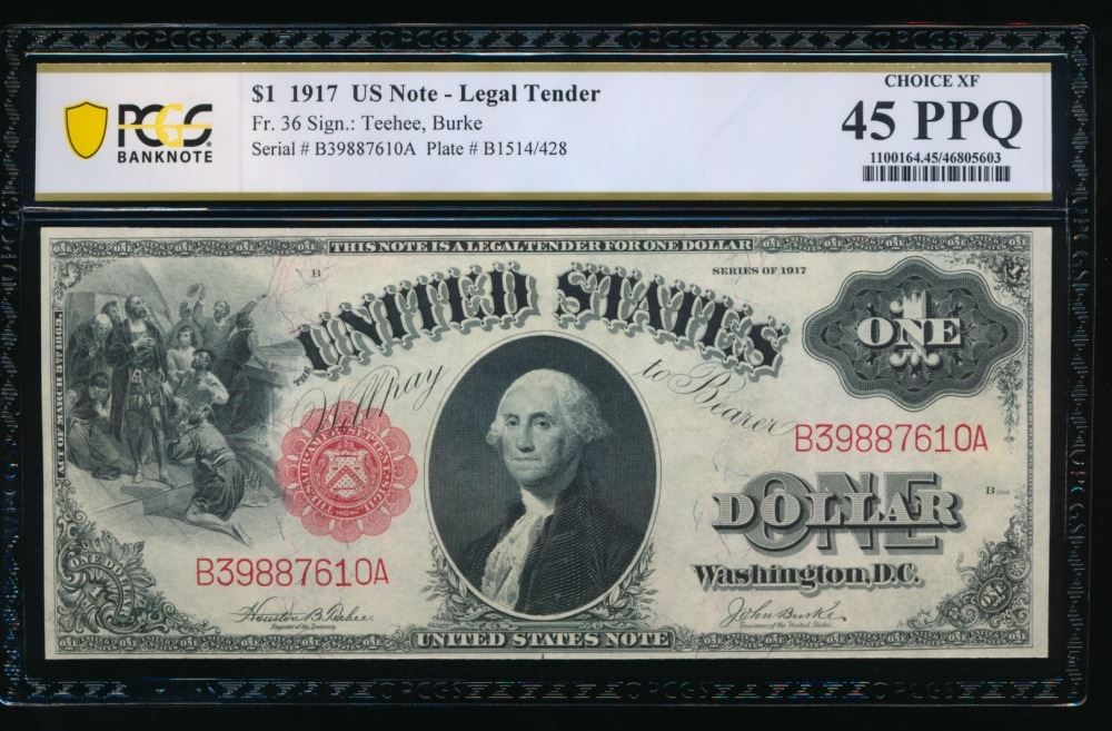 One 1917 $1 Legal Tender Note PCGS 45PPQ.