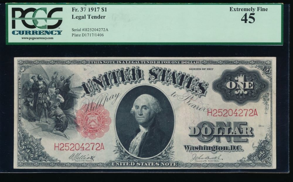One 1917 $1 Legal Tender Note PCGS 45.
