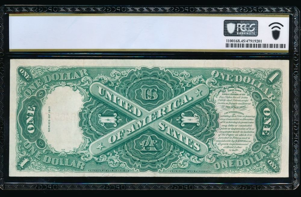 One 1917 $1 Legal Tender Note PCGS 45.