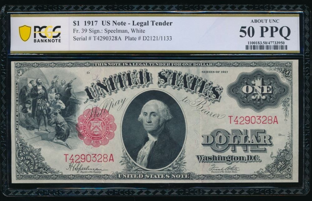 One 1917 $1 Legal Tender Note PCGS 50PPQ.