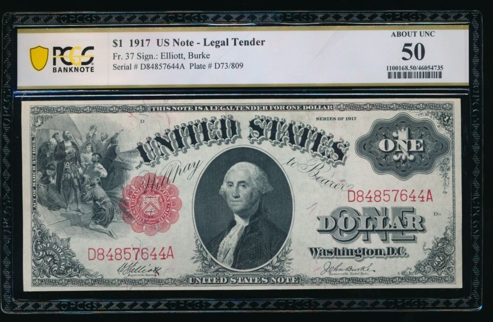 One 1917 $1 Legal Tender Note PCGS 50.