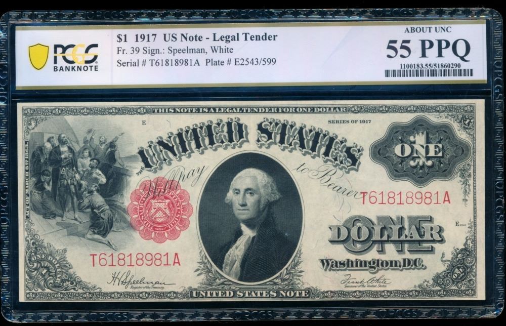 One 1917 $1 Legal Tender Note PCGS 55PPQ.