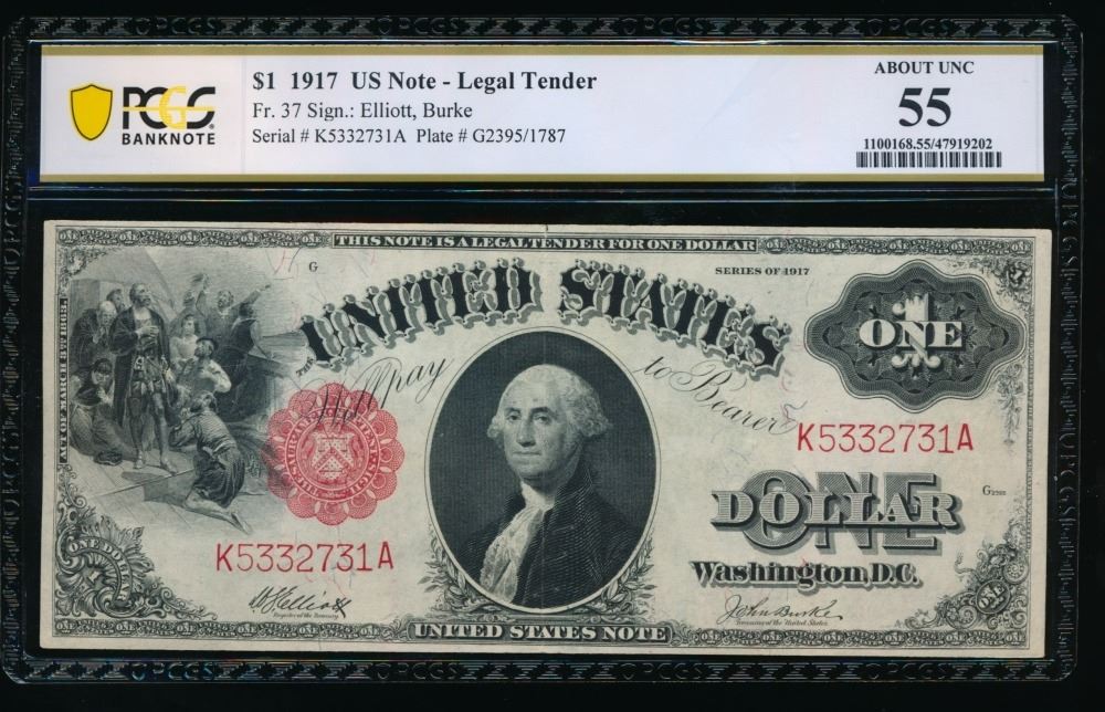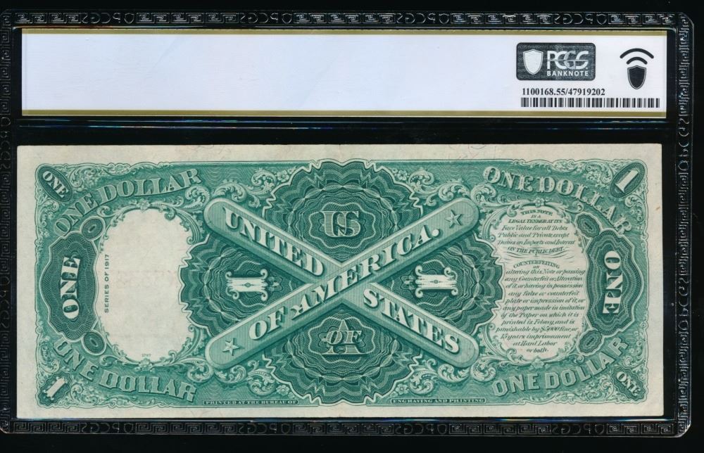 One 1917 $1 Legal Tender Note PCGS 55.