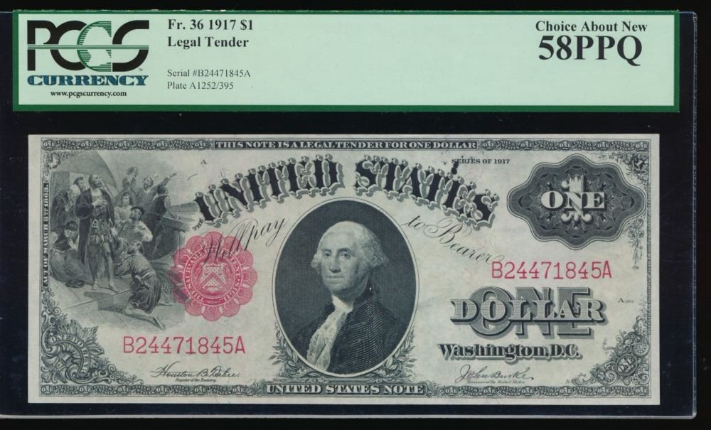 One 1917 $1 Legal Tender Note PCGS 58PPQ.