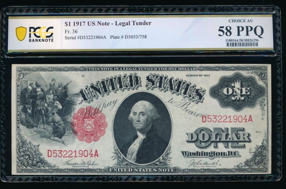 One 1917 $1 Legal Tender Note PCGS 58PPQ.