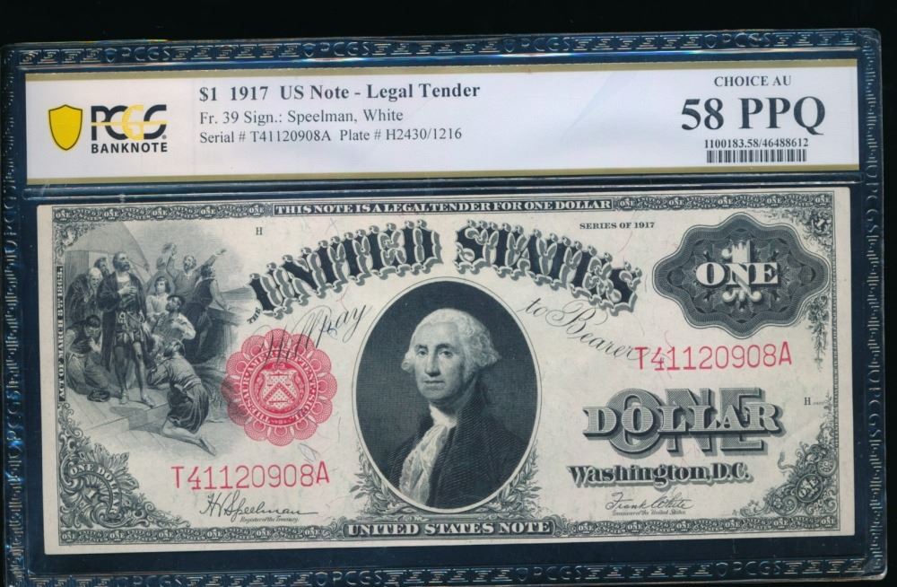 One 1917 $1 Legal Tender Note PCGS 58PPQ.