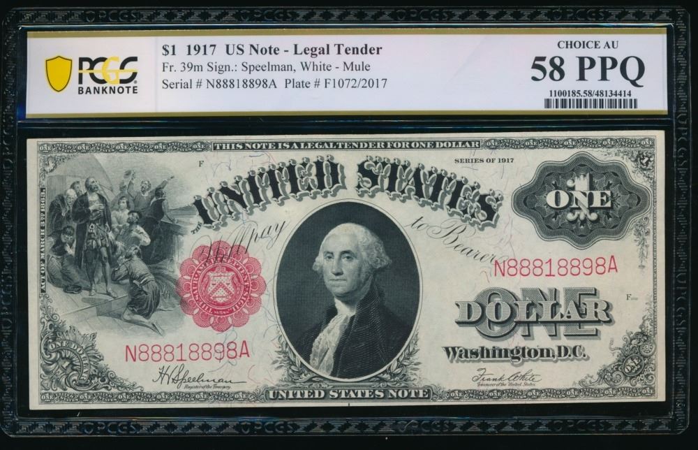 One 1917 $1 Legal Tender Note PCGS 58PPQ.