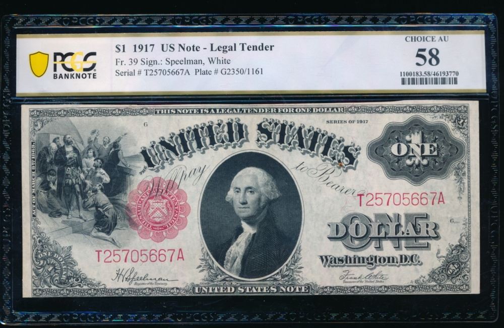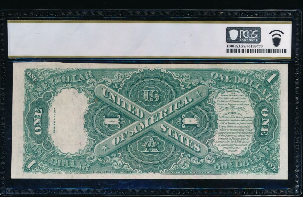 One 1917 $1 Legal Tender Note PCGS 58.