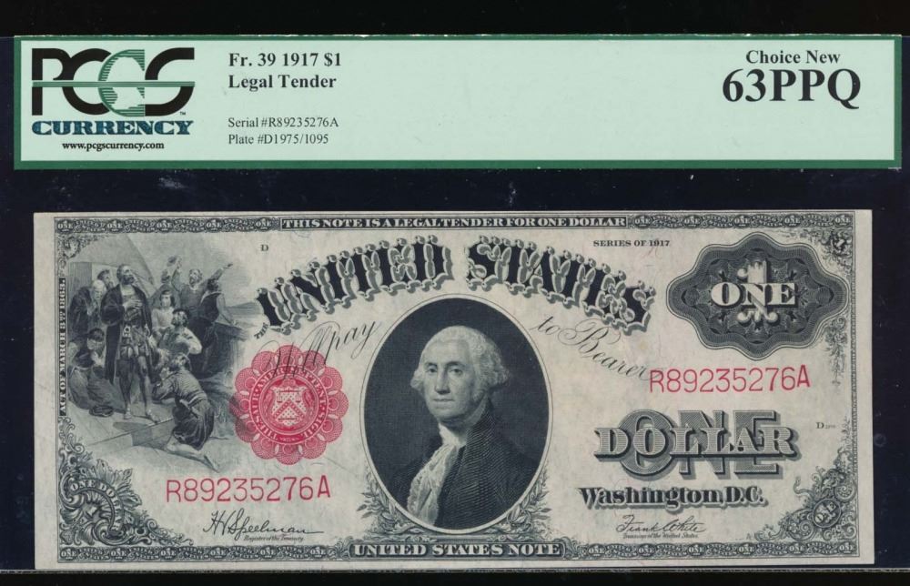 One 1917 $1 Legal Tender Note PCGS 63PPQ.
