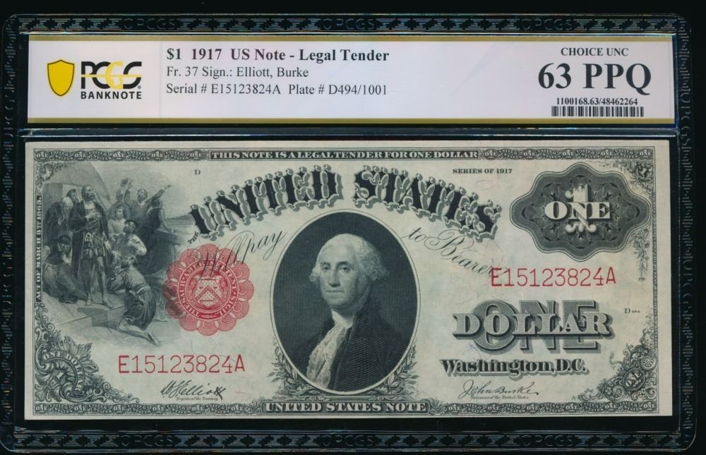 One 1917 $1 Legal Tender Note PCGS 63PPQ.