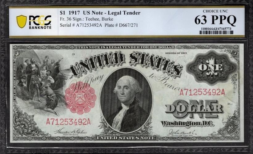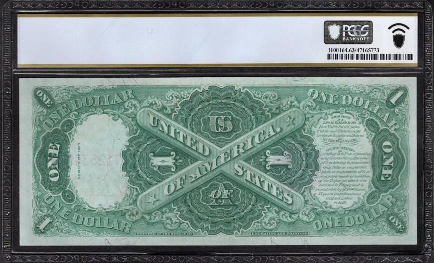 One 1917 $1 Legal Tender Note PCGS 63PPQ.