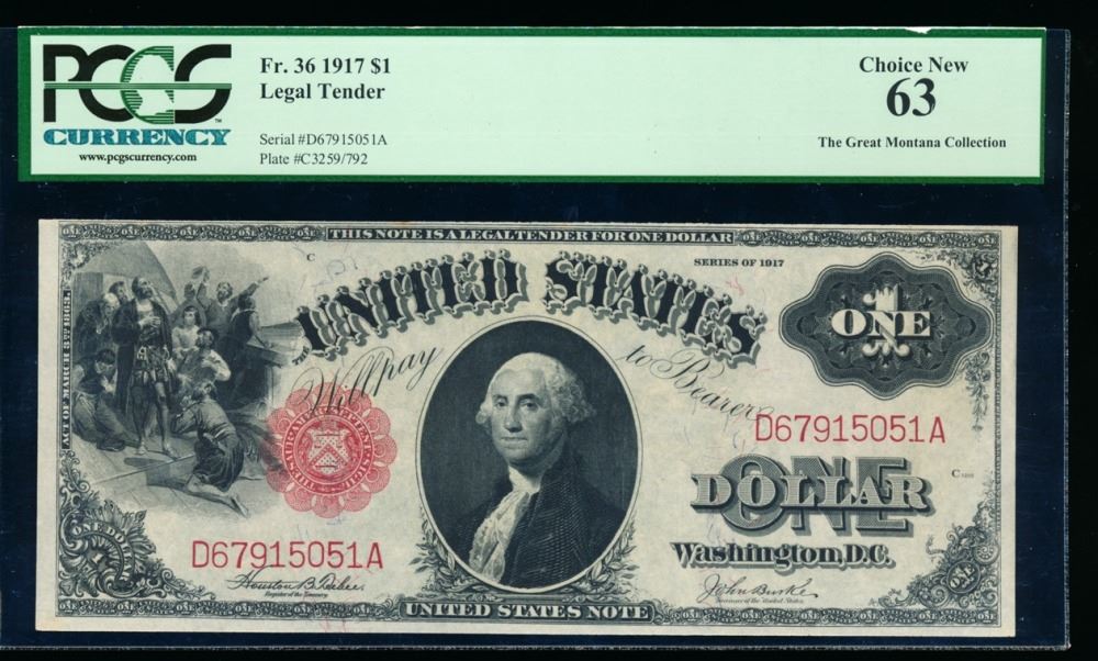 One 1917 $1 Legal Tender Note PCGS 63.