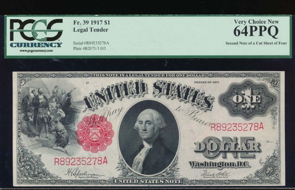 One 1917 $1 Legal Tender Note PCGS 64PPQ.