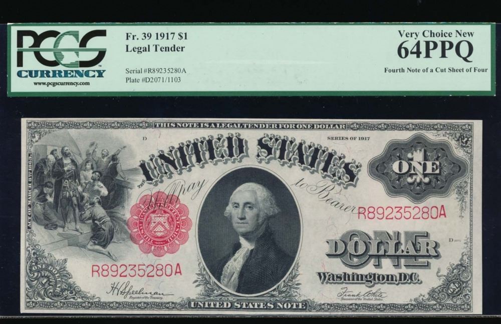 One 1917 $1 Legal Tender Note PCGS 64PPQ.