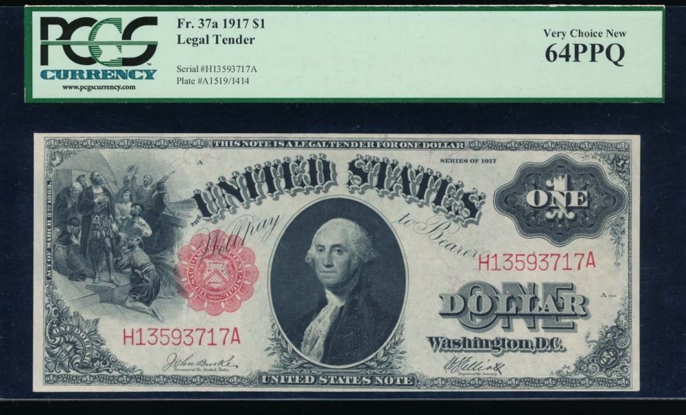One 1917 $1 Legal Tender Note PCGS 64PPQ.