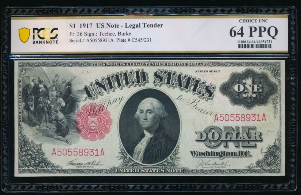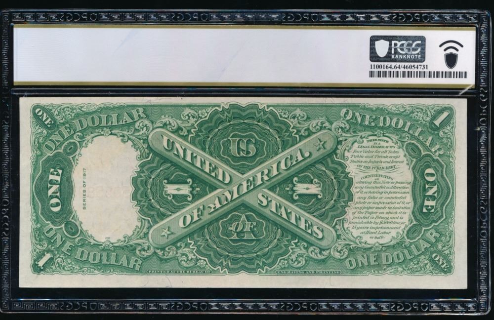 One 1917 $1 Legal Tender Note PCGS 64PPQ.