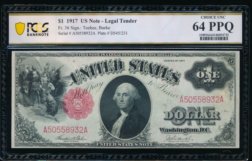 One 1917 $1 Legal Tender Note PCGS 64PPQ.