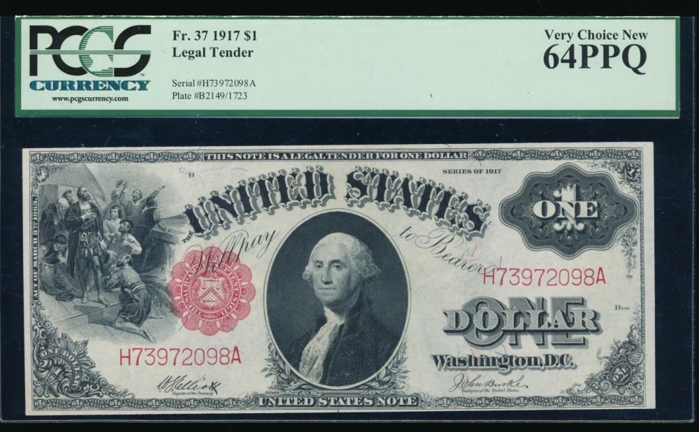 One 1917 $1 Legal Tender Note PCGS 64PPQ.